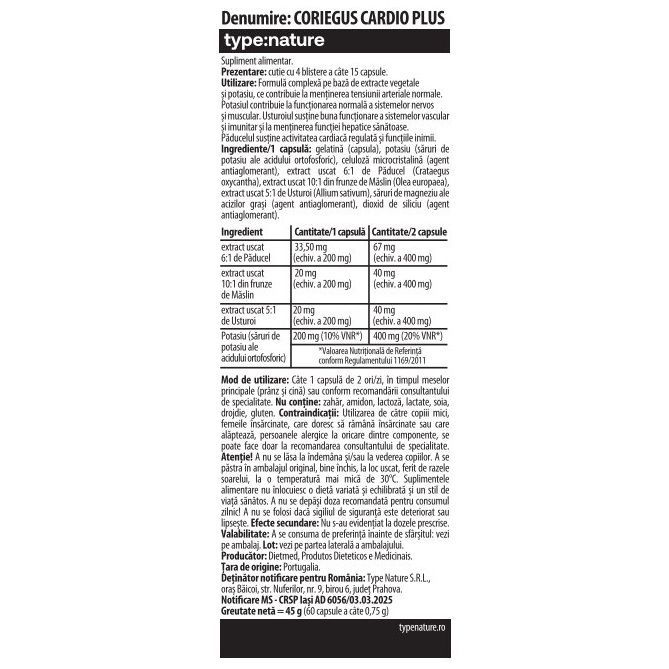 - formula complexa pe baza de extracte vegetale si potasiu, ce poate contribui la mentinerea tensiunii arteriale normale;