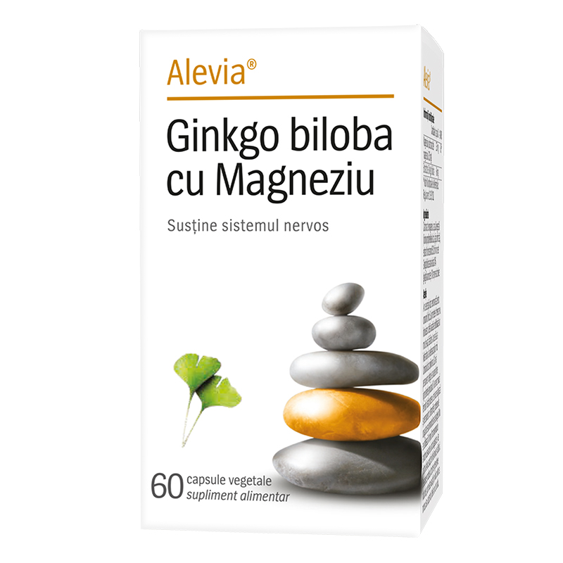 Ginkgo Biloba cu Magneziu 60 capsule vegetale Alevia(poate contribui la sustinerea sistemului nervos) face parte din categoria supliment alimentar.