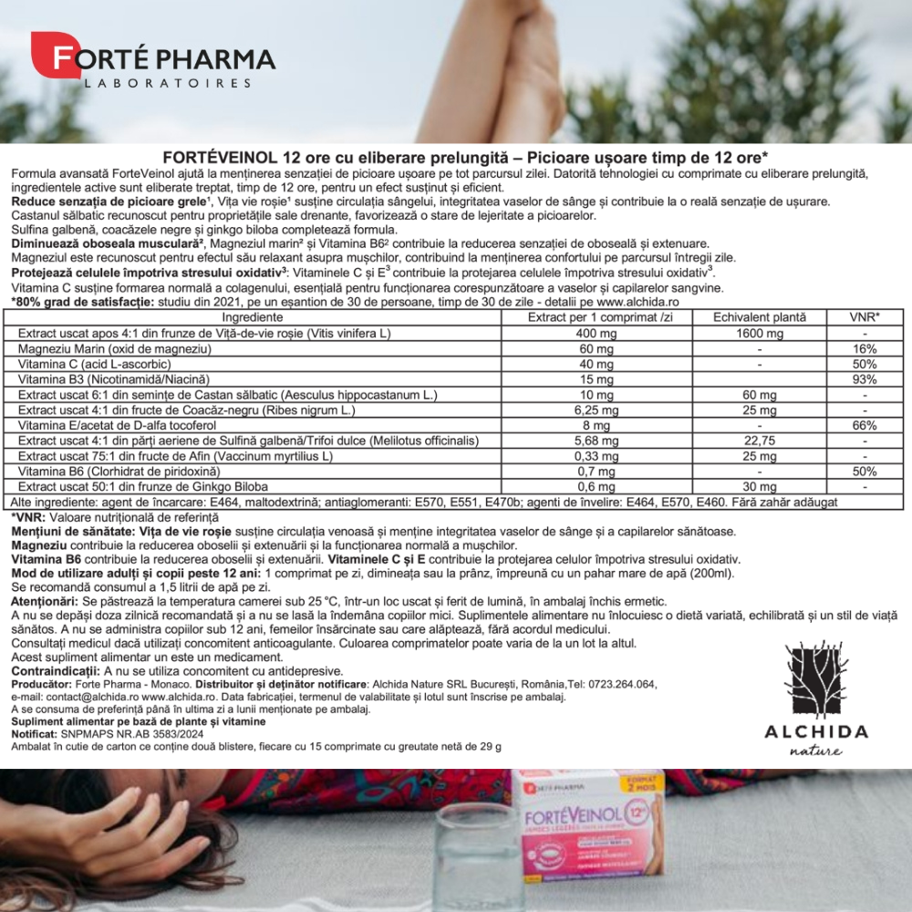 | Ingrediente | Extract per 1 comprimat /zi | Echivalent plantă | VNR* |