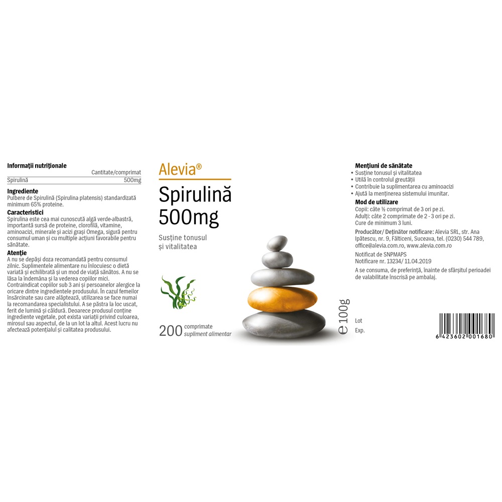 Informatii despre Spirulina, 500 mg, 200 comprimate, Alevia s-ar putea gasi in articolele: