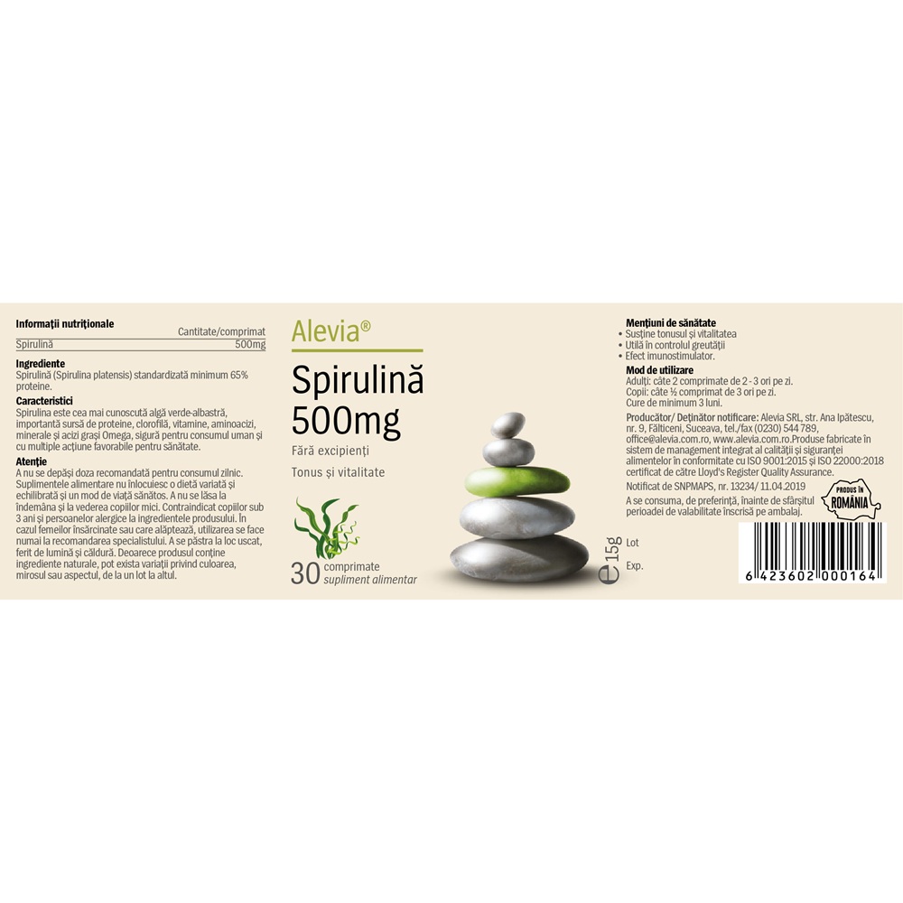 Informatii despre Spirulina, 500 mg, 30 comprimate, Alevia s-ar putea gasi in articolele: