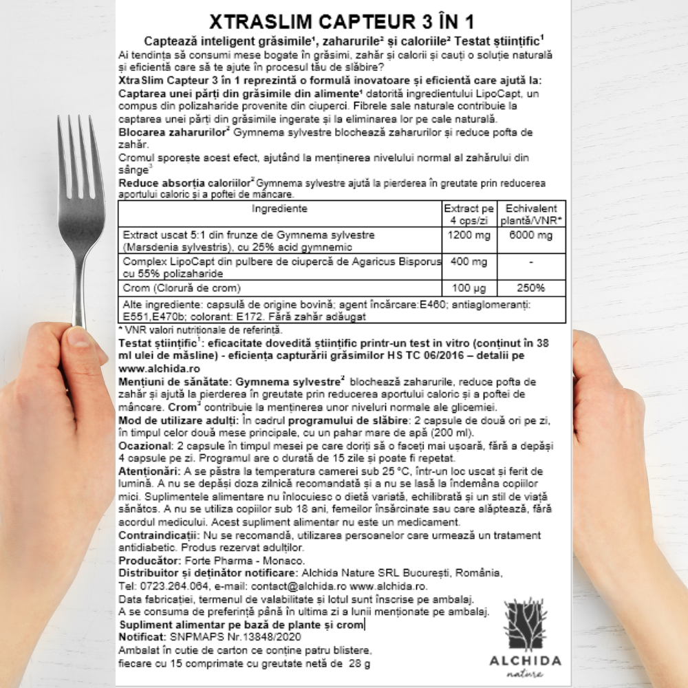 Suplimentele alimentare nu inlocuiesc o dieta variata, echilibrata si un stil de viata sanatos.