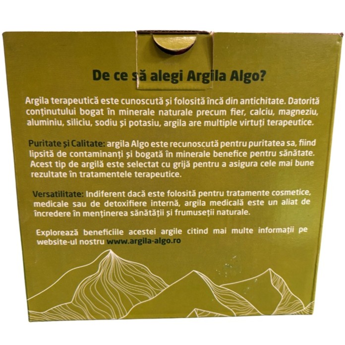 Uz extern: poate fi utilizata sub forma de cataplasme, pentru noduli tiroidieni, noduli mamari, prostata, dureri articulare, ulcer varicos.Din argila si putina apa se face o pasta groasa, consistenta, care se aplica pe locul bolnav in grosime de 0.5-1 cm, fie direct pe piele, fie pe un tifon. Cataplasmele se aplica de 2-3 ori pe zi, timp de 2-3 ore, sau se lasa de seara pana dimineata.