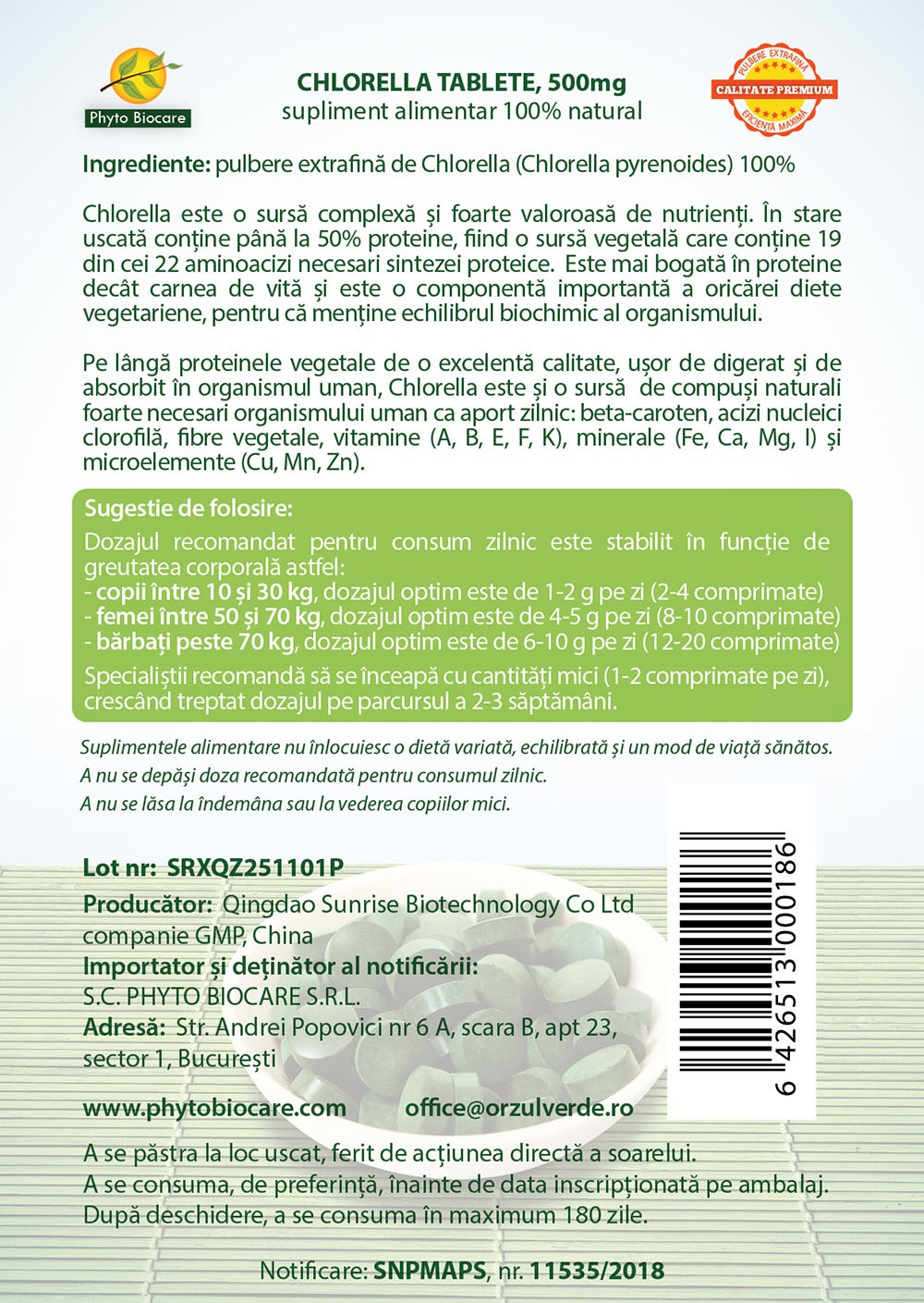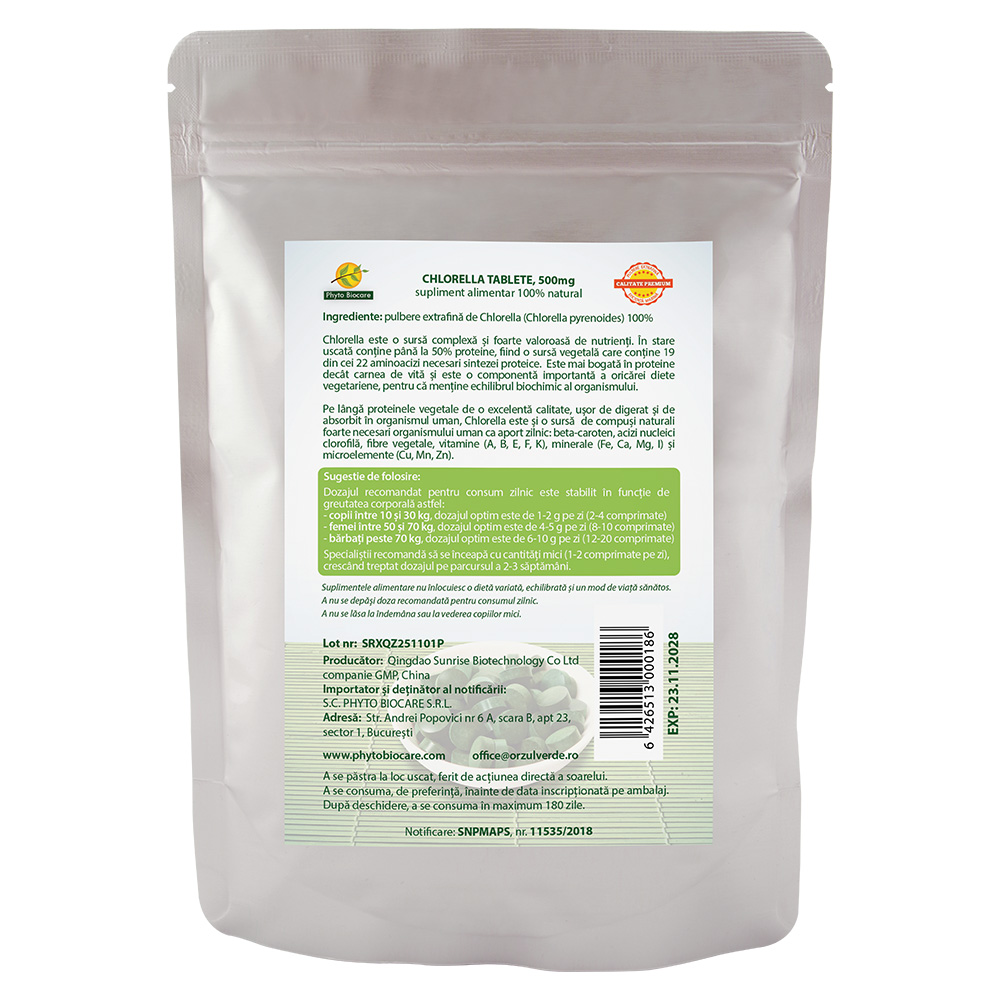 Chlorella 500 mg 300 tablete Phyto Biocare(100% natural) face parte din categoria supliment alimentar grupa preparate fitoterapice dieta si nutritieslabitul sanatos , contine ingrediente activechlorella.