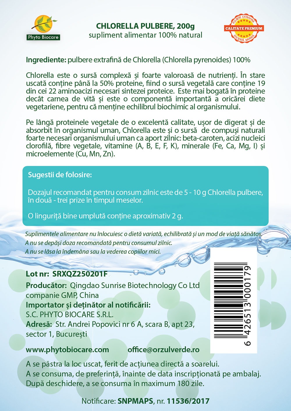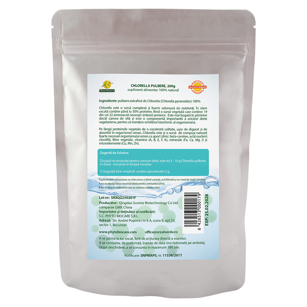 Dozajul recomandat pentru consum zilnic este de 5 - 10 g Chlorella pulbere, in doua - trei prize in timpul meselor.