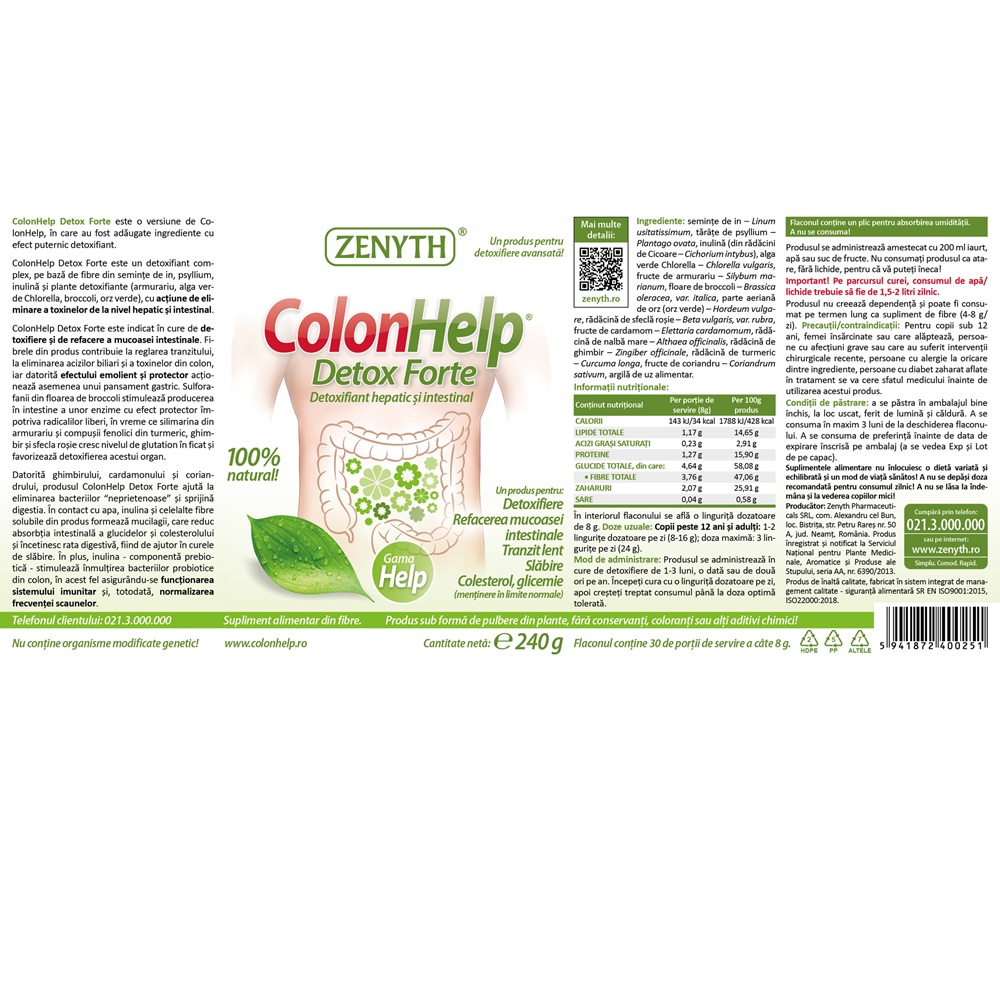 Colon Help Detox Forte 240 g Zenyth(poate contribui la detoxifierea hepatica si intestinala) face parte din categoria supliment alimentar.