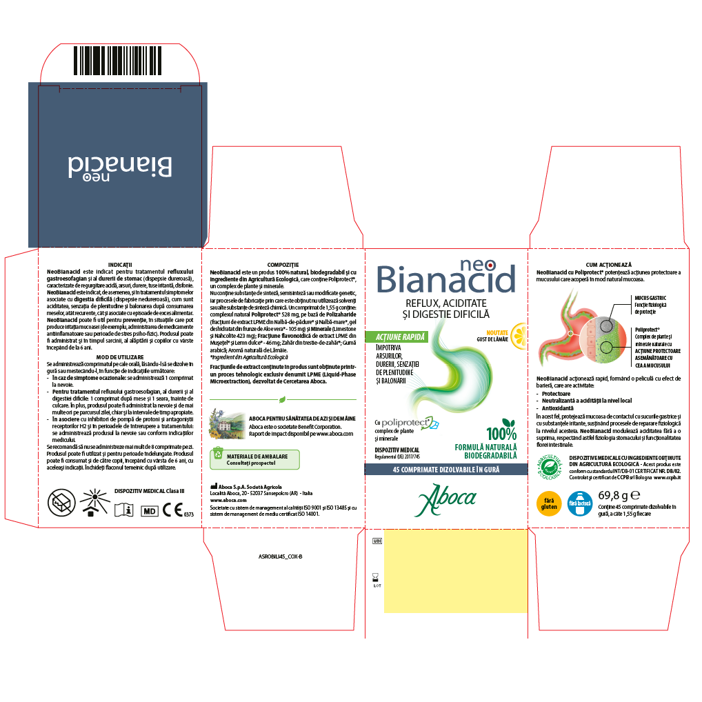 - NeoBianacid este un dispozitiv medical indicat pentru tratamentul refluxului gastroesofagian și al durerii de stomac (dispepsie dureroasă),