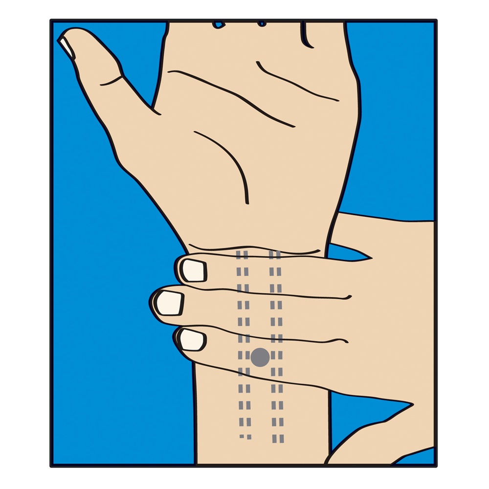 Asaza trei degete de la cealalta mana pe interiorul incheieturii.