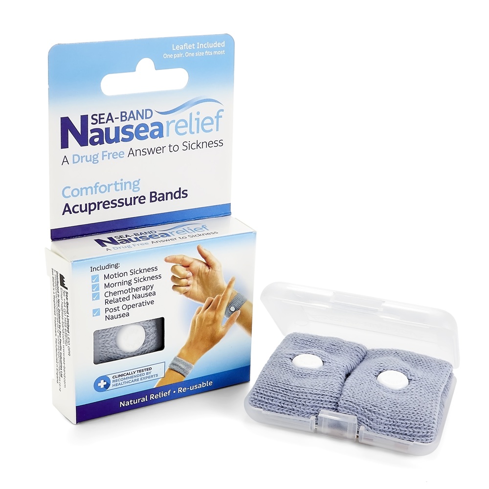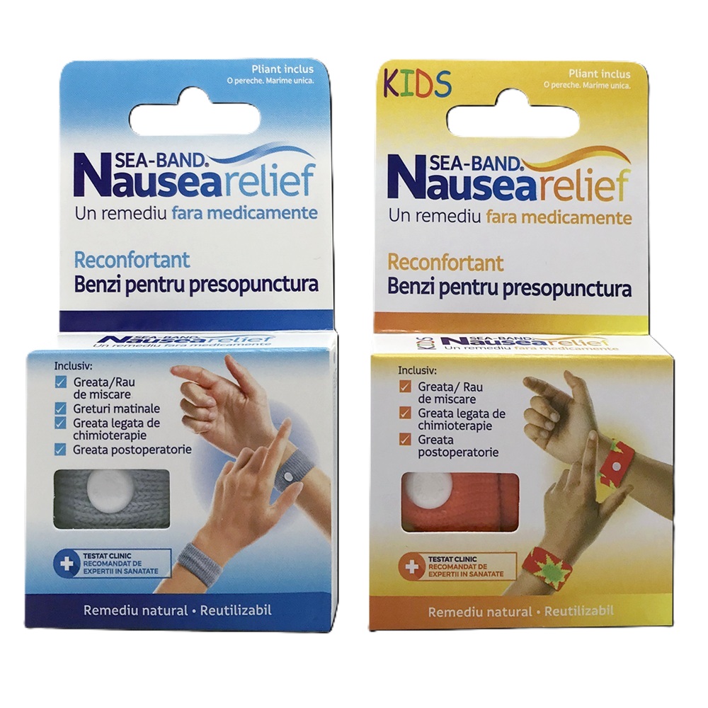 - deoarece utilizarea bratarilor Sea-Band nu presupune medicatie nu produce nici un efect secundar asociat tratamentului cu medicamente antiemetice si pot fi purtate pe fiecare incheietura oricand simtiti starea de greata;
