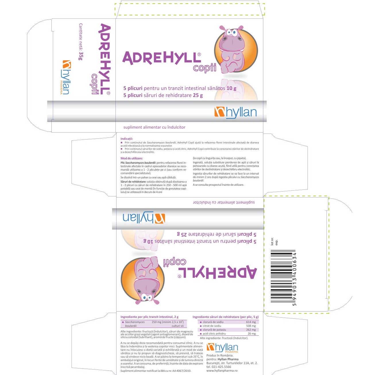 - contine 5 plicuri Saccharomyces boulardii si 5 plicuri saruri de rehidratare.