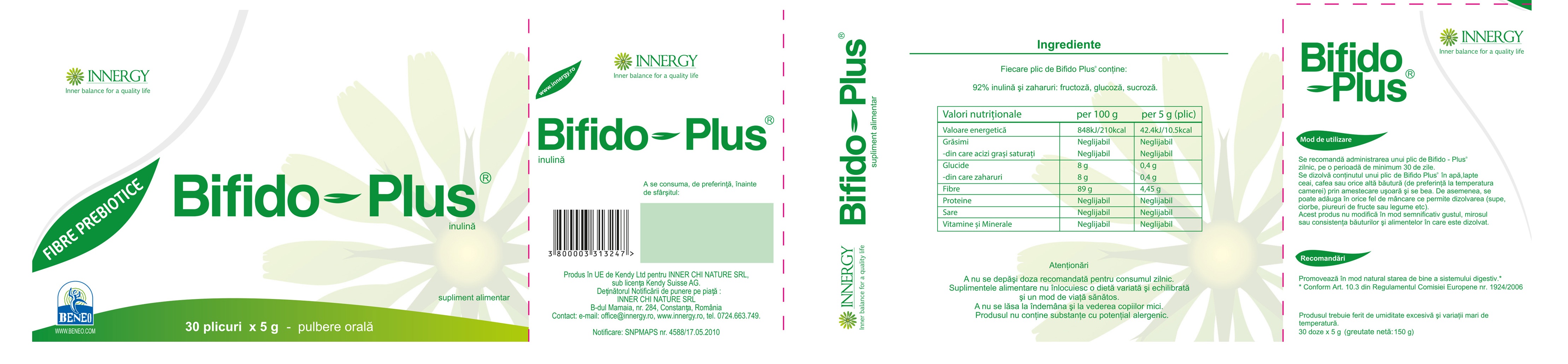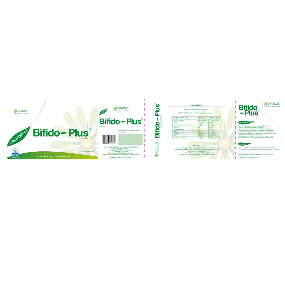 Fiecare plic de Bifido Plus contine: 92% inulina si zaharuri: fructoza, glucoza, sucroza.