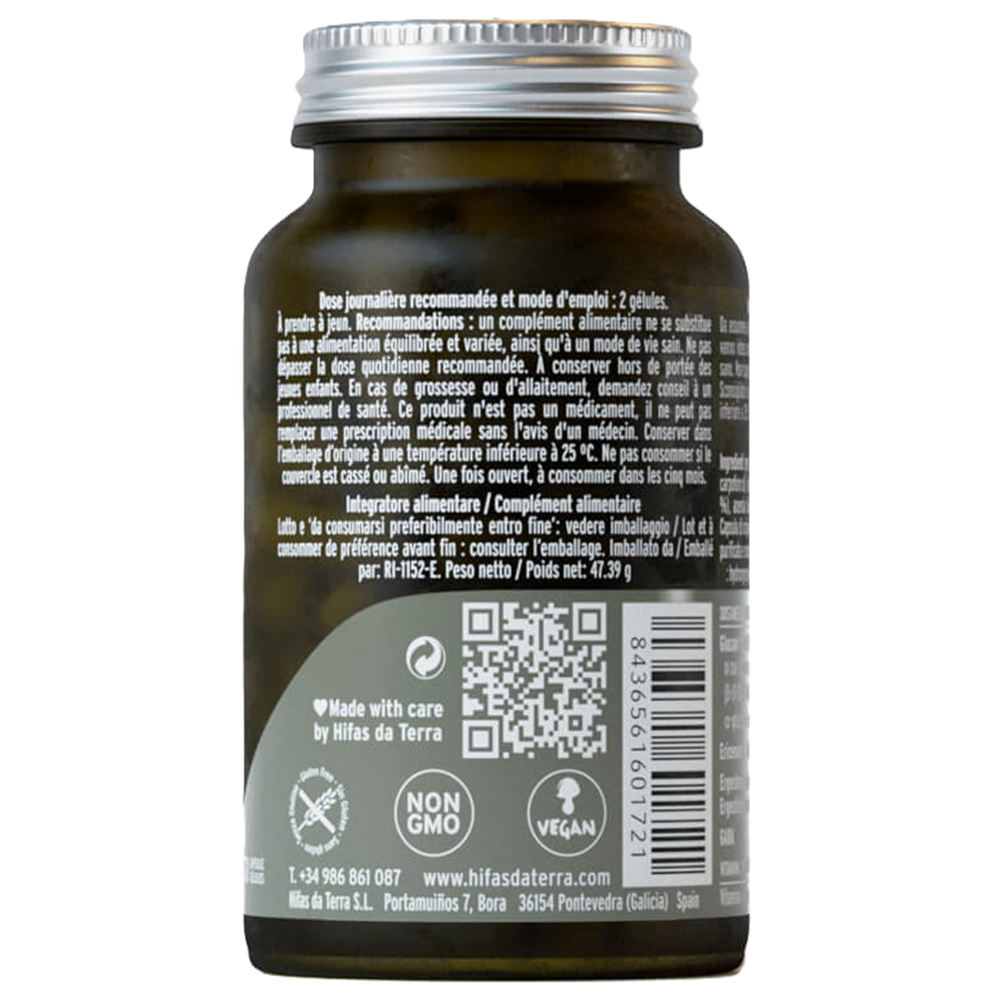 Ingrediente per capsula (70 capsule): Fiecare capsula contine 495 mg extract ecologic din corp fructifer de Coama de leu (Hericium erinaceus) Herizumib, 35,29 mg acerola ecologica (Malpighia glabra) cu 6 mg vitamina C.
