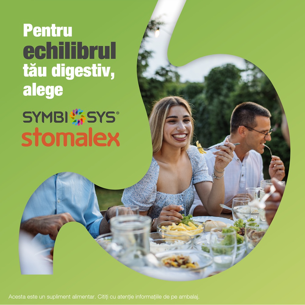 - Symbiosys Stomalex este o formula care contine o noua generatie de bacterii formatoare de spori (Bacillus coagulans MY®01 și Bacillus subtilis MY®02) și extract de rizom de ghimbir;