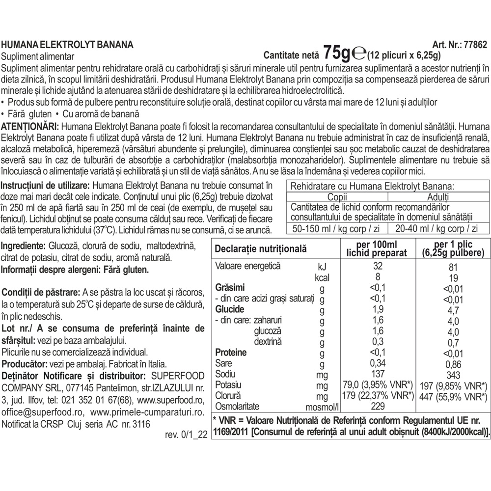 Humana Elektrolyt Banana poate fi utilizat dupa varsta de 12 luni.