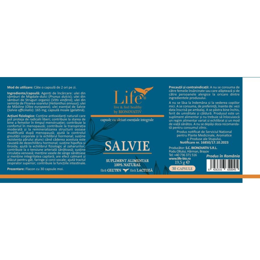 Agenti de incarcare: ulei din samburi de migdale-dulci (prunus dulcis); ulei din samburi de struguri organici (vitis vinifera); ulei din seminte de floarea-soarelui (helianthus annuus); ulei de masline (olea europaea); vezi esential de salvie (salvia officinalis): 165 mg; capsula moale (gelatina).