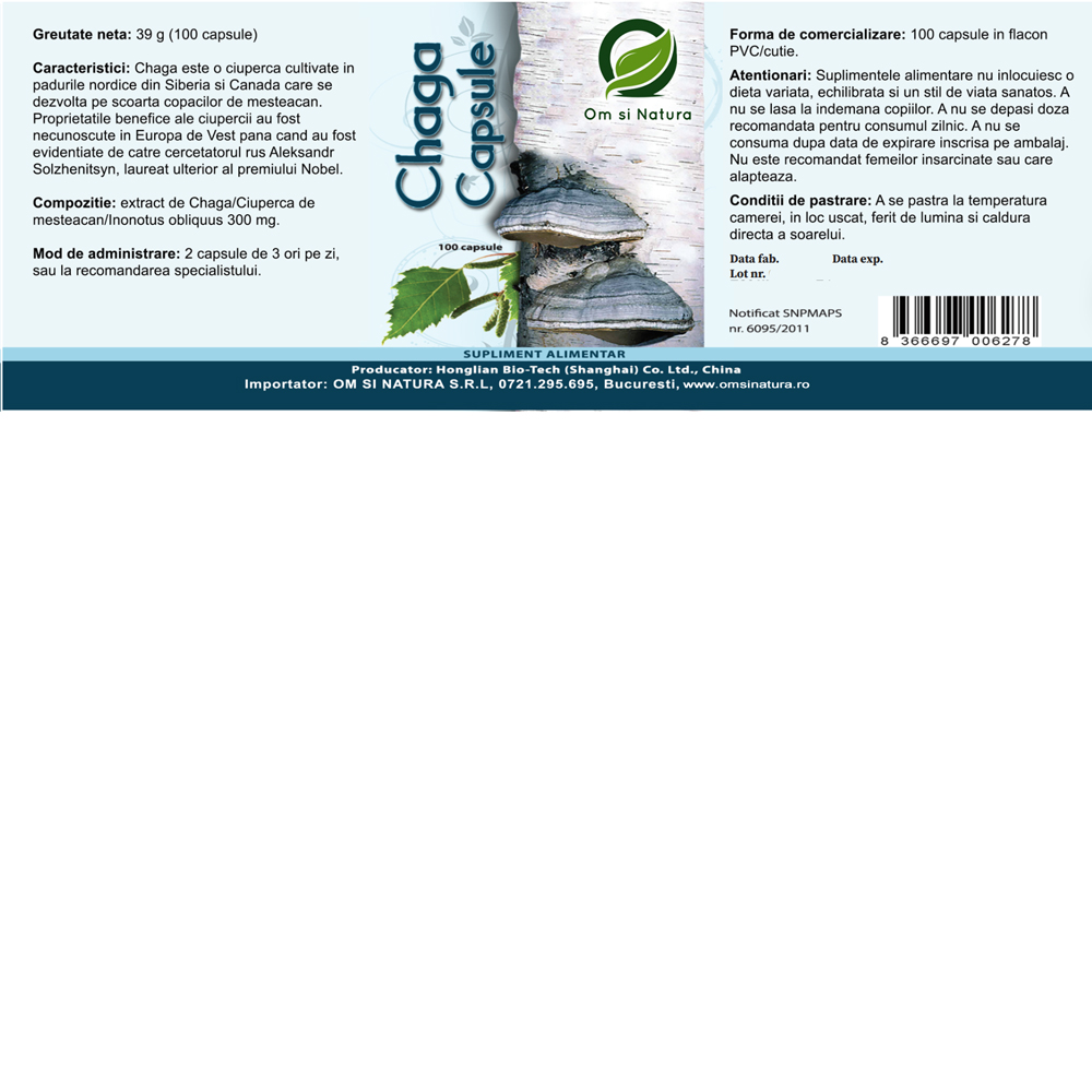 Ingrediente:Extract de Chaga/Ciuperca de mesteacan/Inonotus obliquus 300 mg.