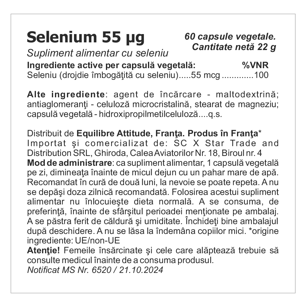 Seleniu (drojdie îmbogăţită cu seleniu) 55 mcg