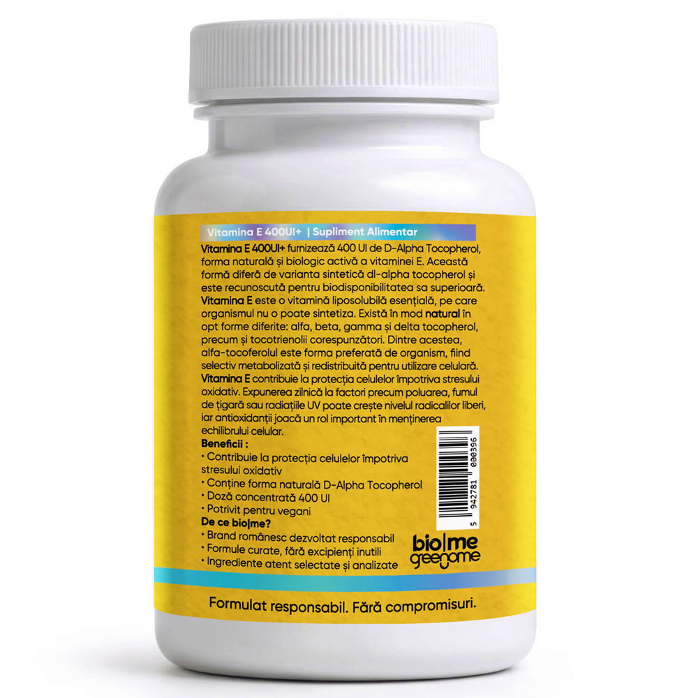 - furnizeaza 400 UI de D-Alpha Tocopherol, forma naturala si biologic activa a vitaminei E;
