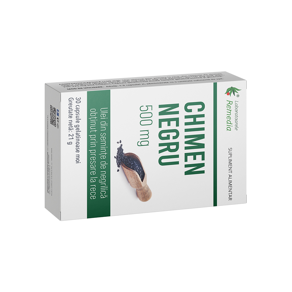 - uleiul extras prin presare la rece din semintele de chimen negru este bogat in grasi nesaturati (acid linoleic, oleic si palmitic) si compusi antioxidanti naturali, care pot contribui la intarirea sistemului imunitar, mentinerea sanatatii tractului respirator si a pielii.