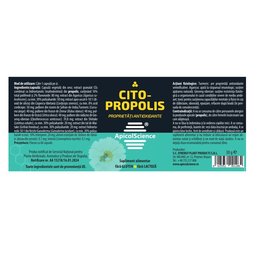 Contraindicatii: A nu se consuma de catre persoanele alergice la produsele apicole (propolis), de catre femeile insarcinate sau care alapteaza.