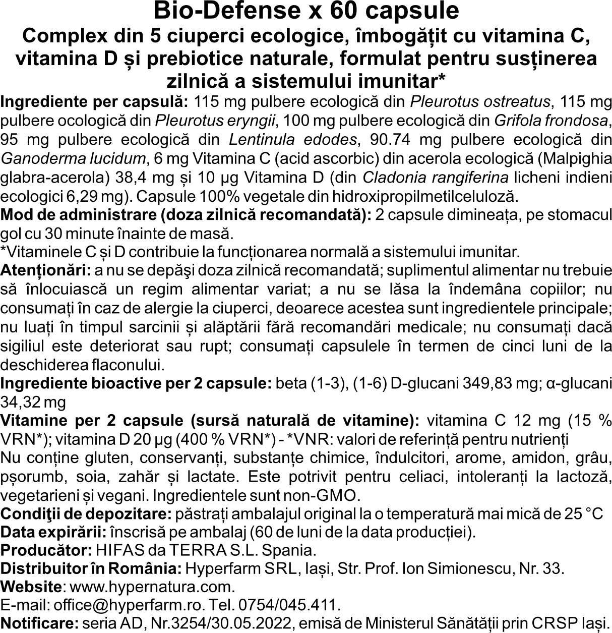 Complex de 5 ciuperci medicinale ecologice si vitamine Bio Defense, 60 capsule, Hifas da Terra