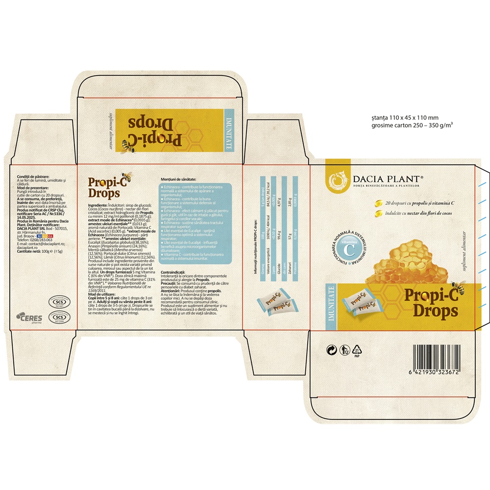 Valori nutritionale:Un drops furnizeaza 5 mg Vitamina C (6% din VNR*).