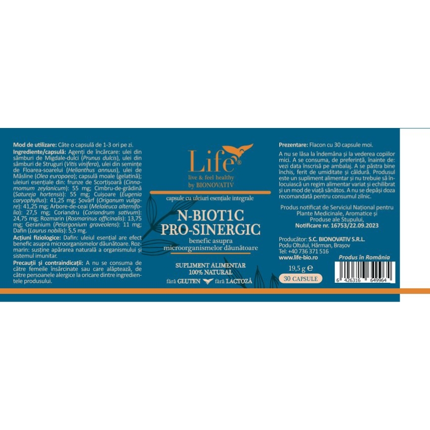 Produs notificat de Serviciul National pentru Plante Medicinale, Aromatice si Produse ale Stupului, Notificare nr. 16753/22.09.2023.