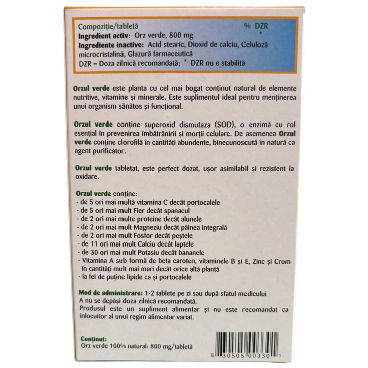 - orzul verde este planta cu cel mai bogat conținut natural de elemente nutritive, vitamine şi minerale;