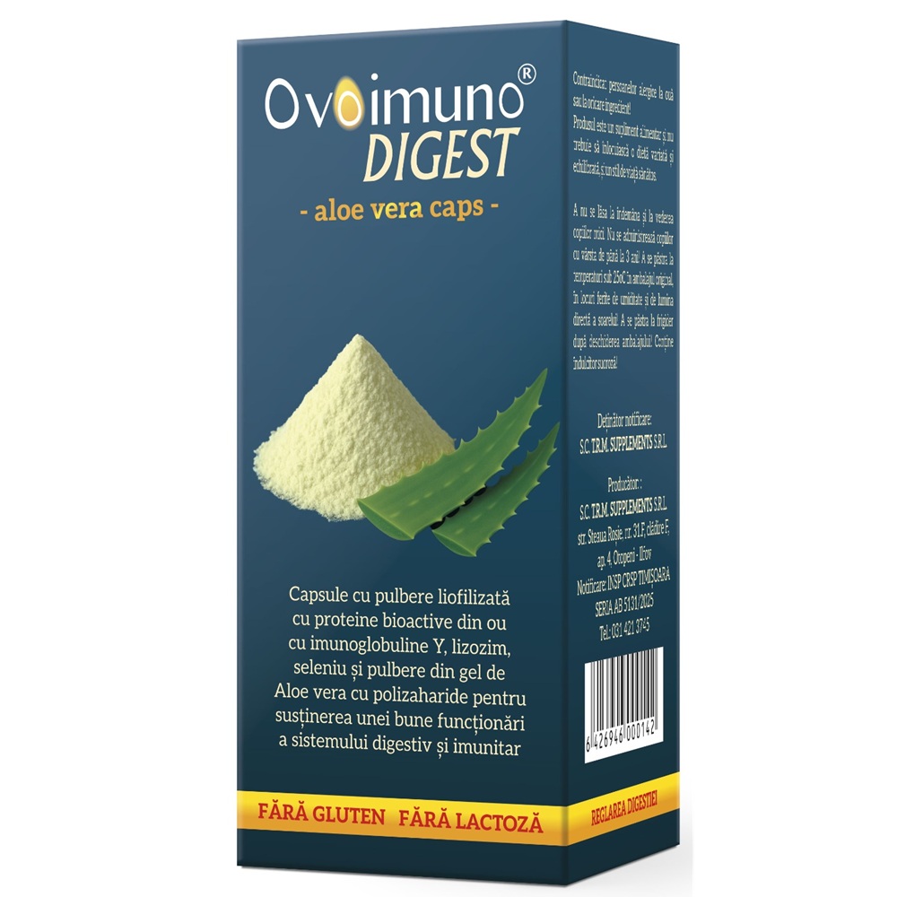 Ingrediente/Capsula 450 Mg: 210 Mg Pulbere Liofilizata Din Ou Integral Contine Min. 4200 µg IgY, Min. 6300 µg Lizozim, Min. 52,5 Mg Proteine Bioactive, Min. 0,19 µg Seleniu Organic - 0,3% DZR, 100 Mg Pulbere Din Gel De Aloe Vera Contine 60 Mg Polizaharide (Glucomannan, Mannan, Pectine), Indulcitor: Sucroza 140 Mg, Capsula Vegetala-Hipromeloza Si Gelifiant - Guma Gellan.