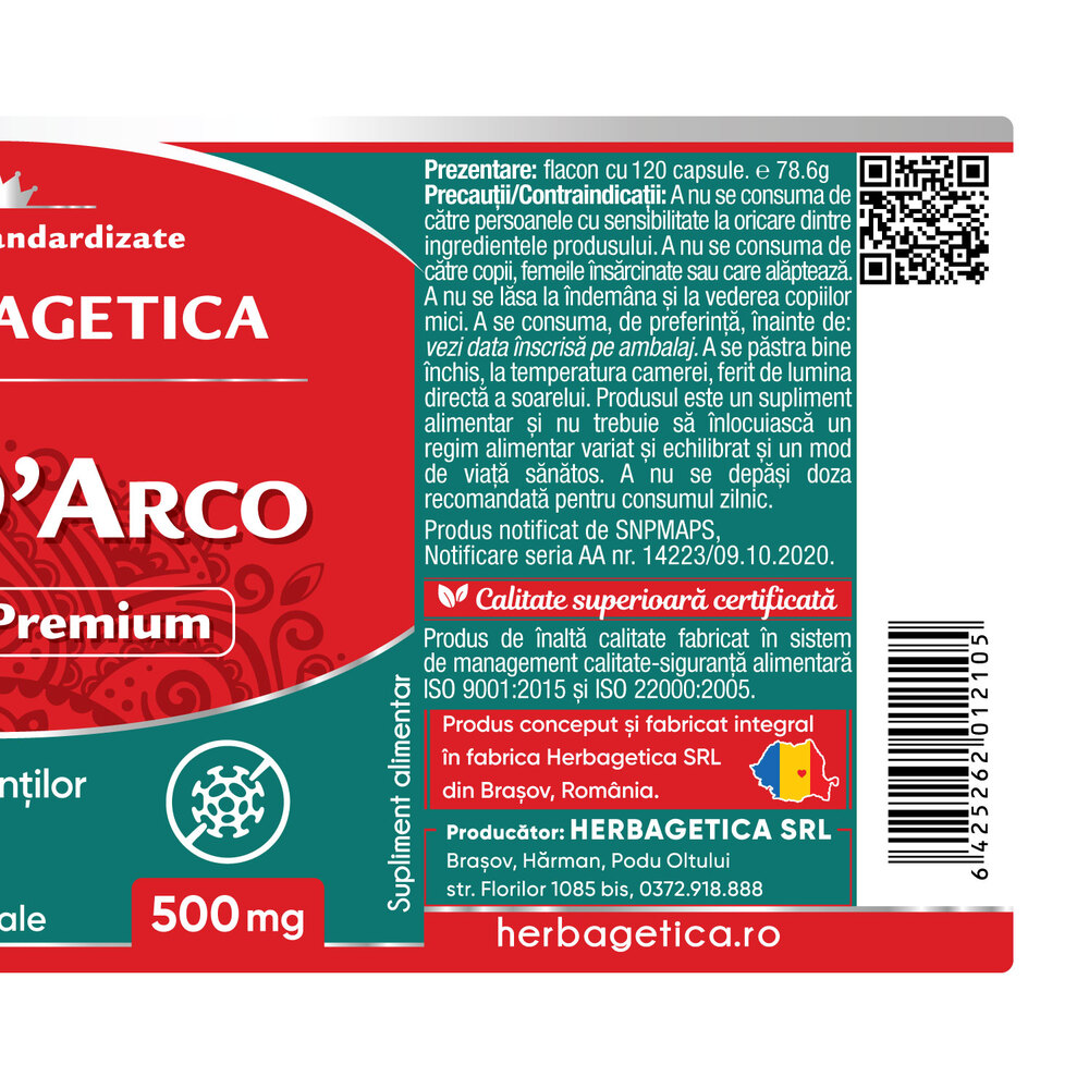 Extract 5:1 Pau D'Arco 500 mg; Extract 4:1 Astragalus membranaceus 10 mg; Extract Azadirachta Indica 4% substante amare 10 mg; Extract 8:1 Laurus nobilis 5 mg; capsula: vegetala.