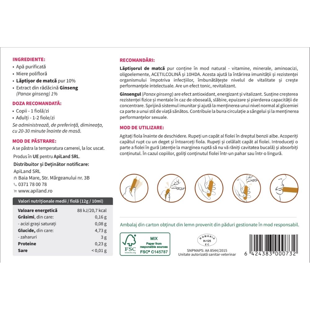 - Lăptişorul de matcă pur conţine în mod natural - vitamine, minerale, aminoacizi, oligoelemente, ACETILCOLINĂ şi 10HDA;