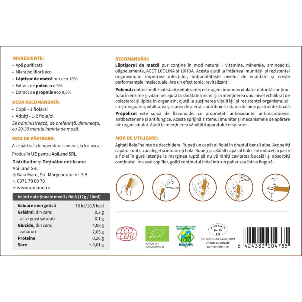 Tonicul apicultorului Bio 10 fiole Apiland(este un mix optim de vitamine, minerale si antioxidanți) face parte din categoria supliment alimentar , contine ingrediente activelaptisor de matca, polen, propolisul.