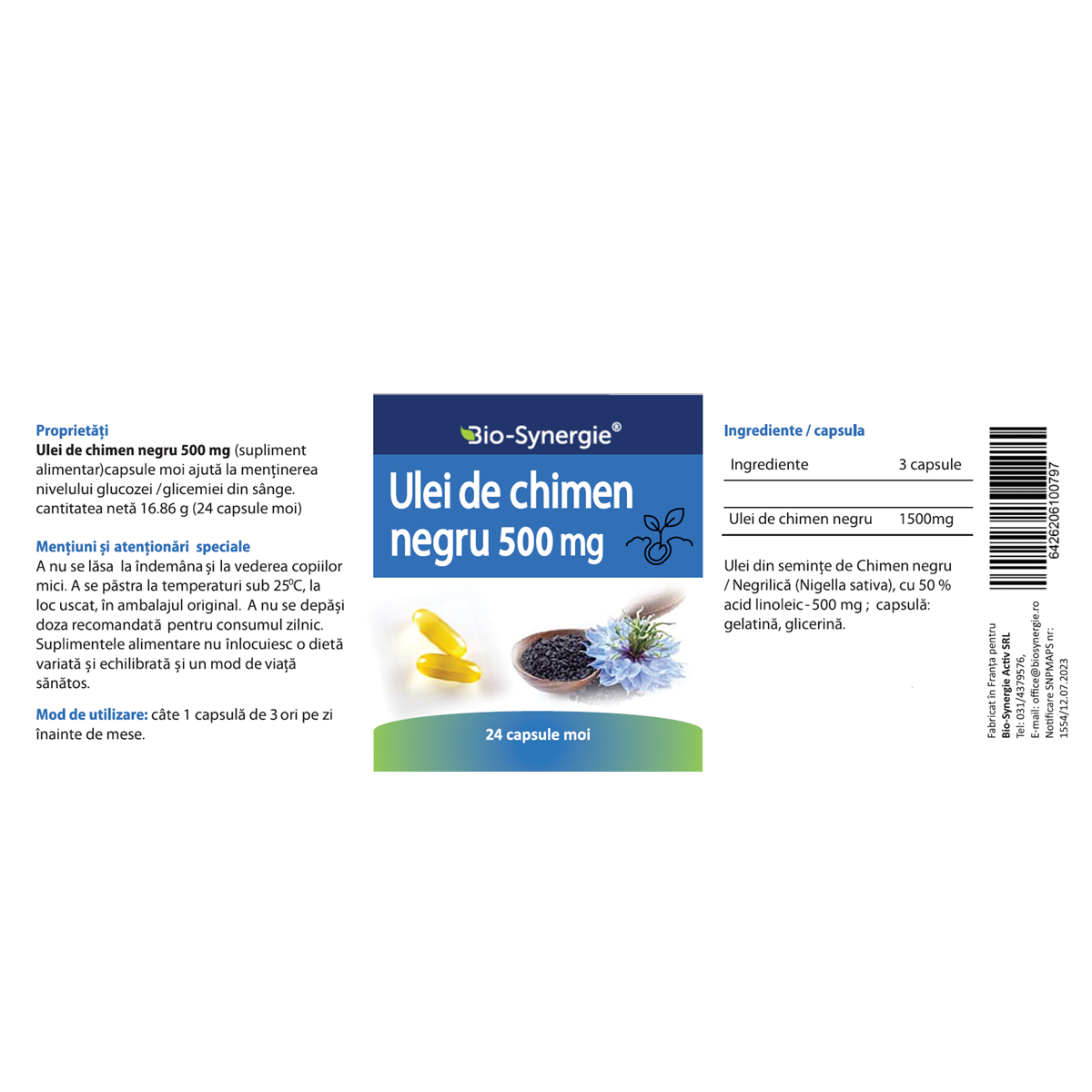Ulei de chimen negru, 500 mg, 24 capsule moi, Bio Synergie [6426206100797]