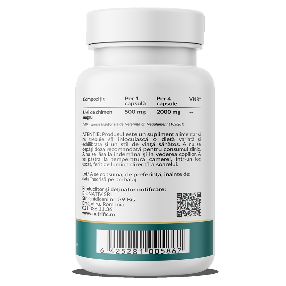 Ingrediente:Fiecare capsula contine ulei de chimen negru (Nigella sativa).