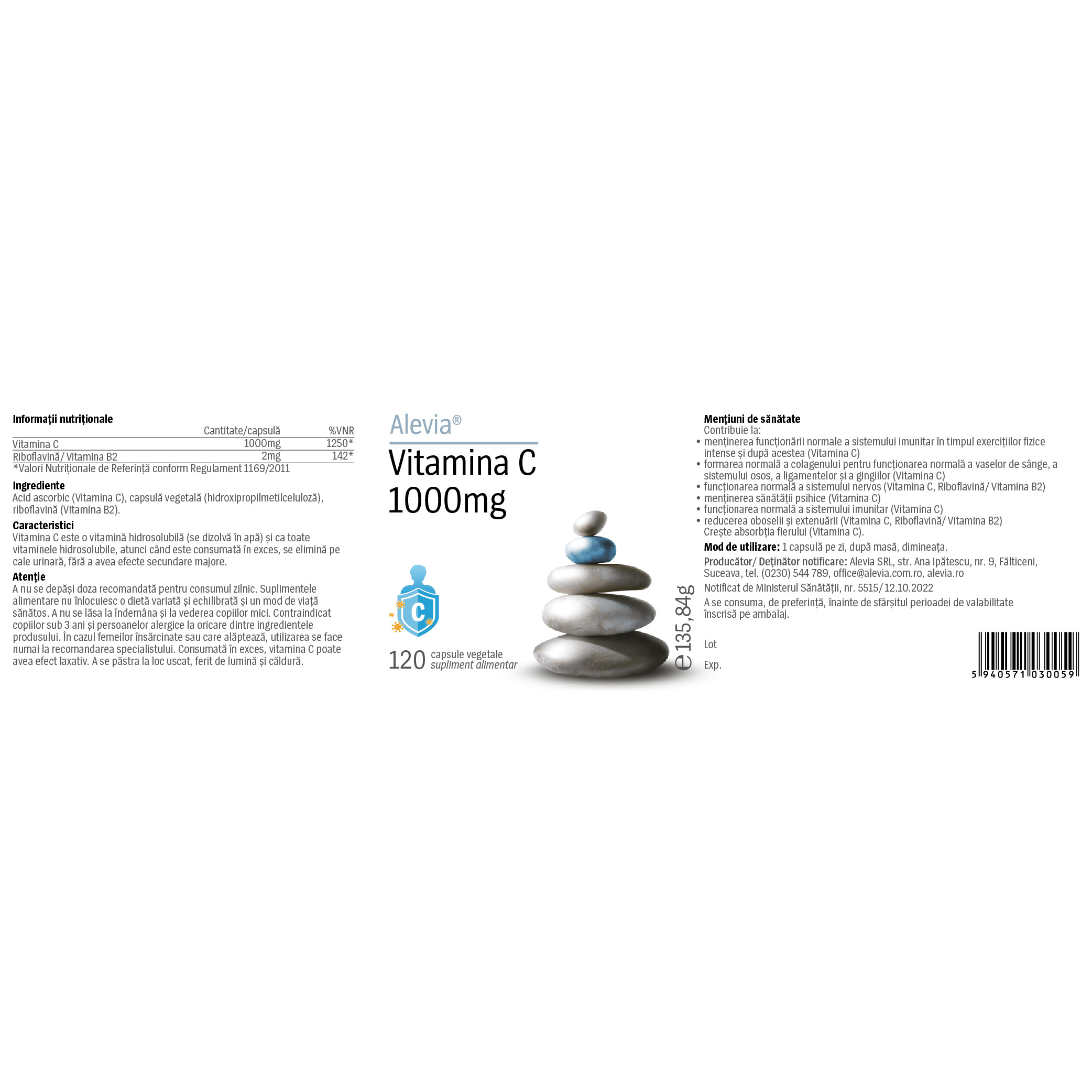Ingrediente:Acid ascorbic (Vitamina C), capsulă vegetală (hidroxipropilmetilceluloză), riboflavină (Vitamina B2).