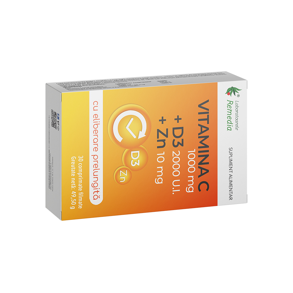 - formula complexa ce combina trei nutrienti esentiali, in doze optime- Vitamina C (1000 mg), Zinc (10 mg) si Vitamina D3 (2000 U.I.);