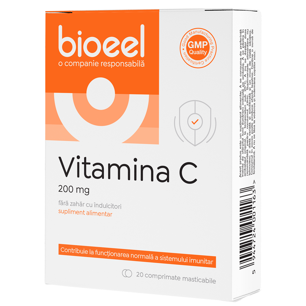 Sorbitol (indulcitor), vitamina C (acid ascorbic) 200 mg (250% VNR*), talc, acid stearic si dioxid de siliciu coloidal (antiaglomeranti), aspartam si zaharina (indulcitori).