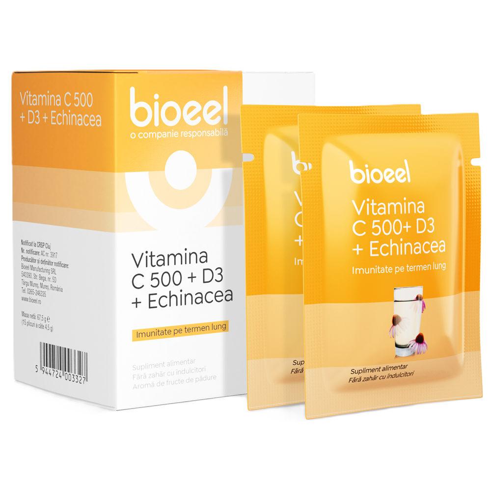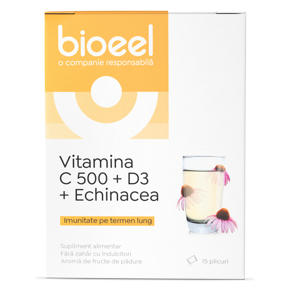 Vitamina C 500 + D3 + Echinacea, 15 plicuri, Bioeel [5944724003327]