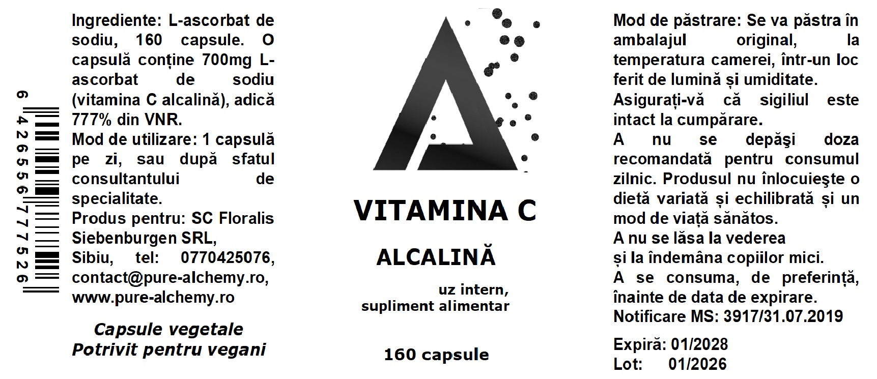 Vitamina C alcalina Alchemy, 160 capsule, Aghoras [6426556777526]