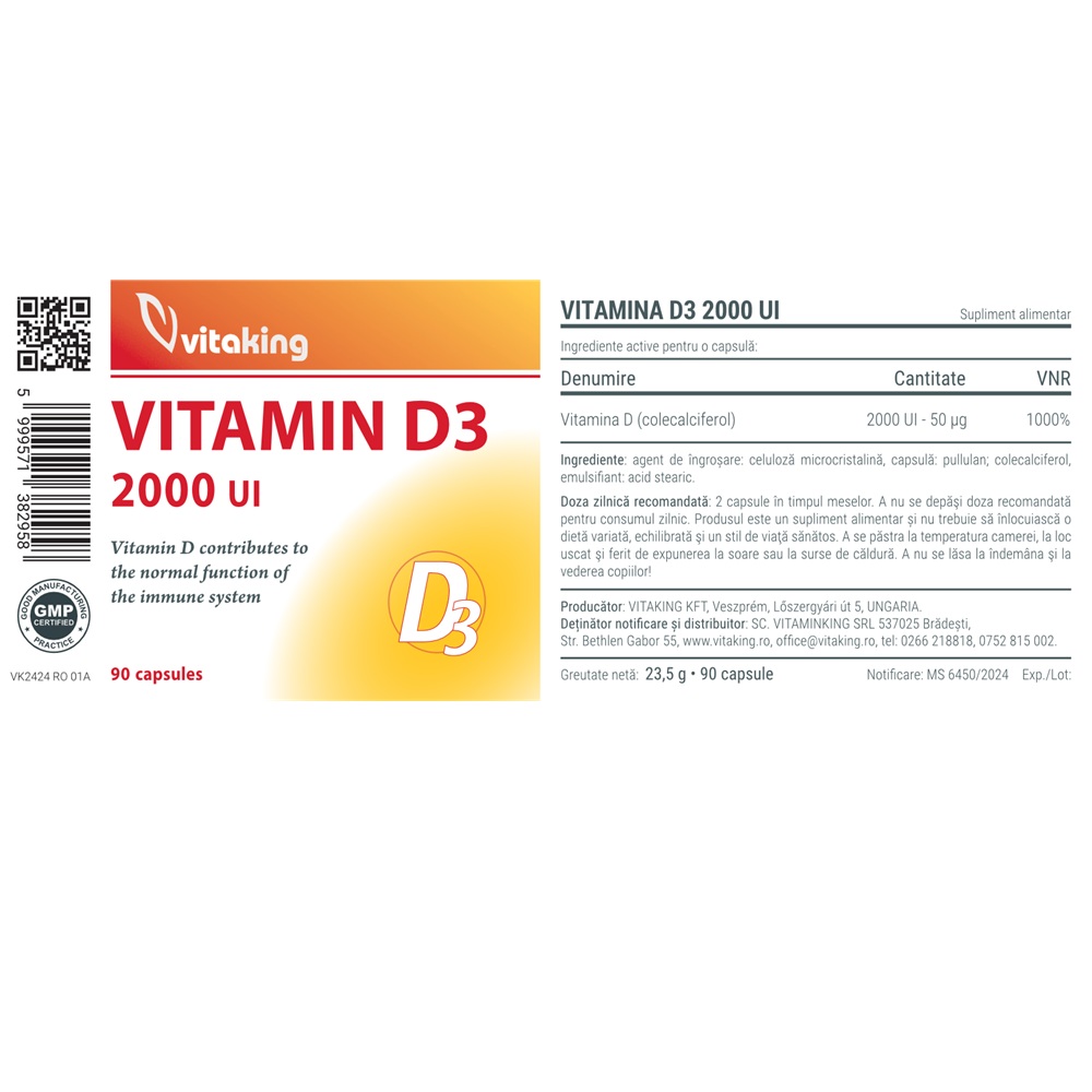 Agent de îngroșare: celuloză microcristalină, capsulă: pullulan; colecalciferol, emulsifiant: acid stearic.