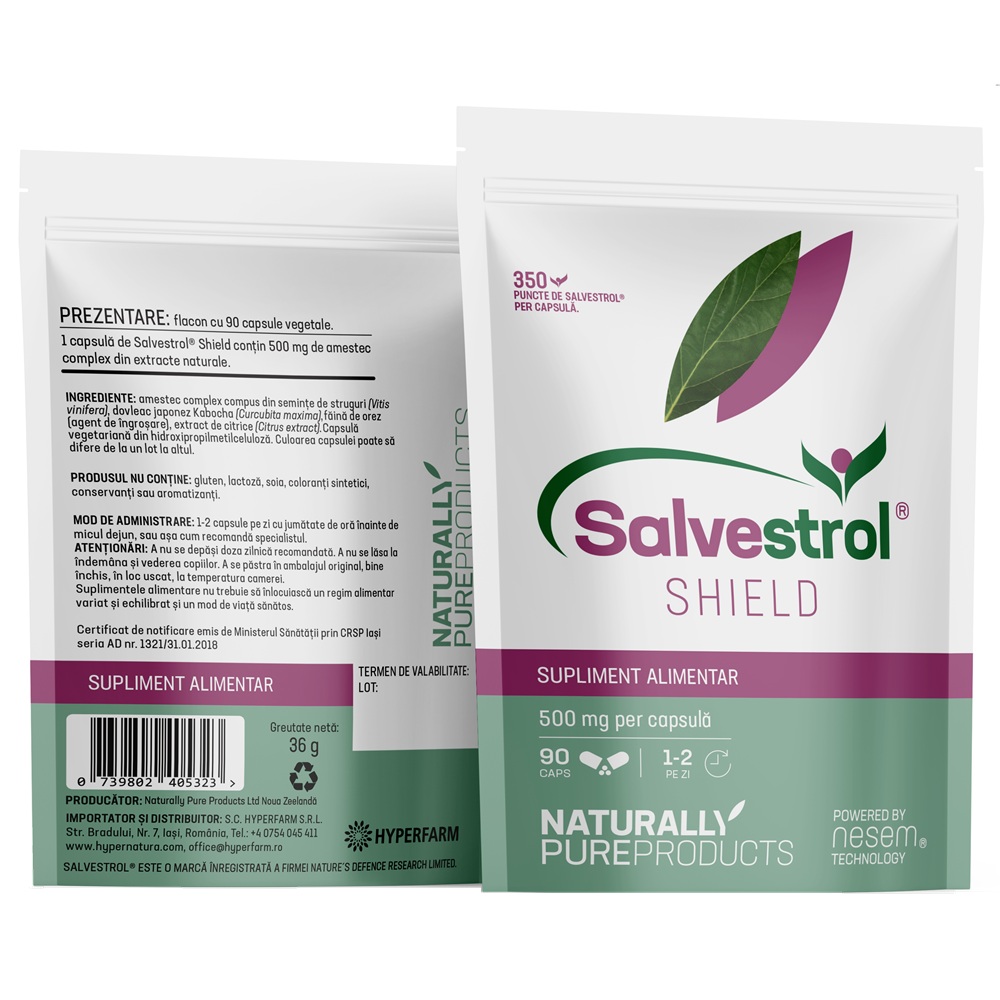 - 1 capsula de Salvestrol Shield contin 500 mg de amestec complex din extracte naturale;