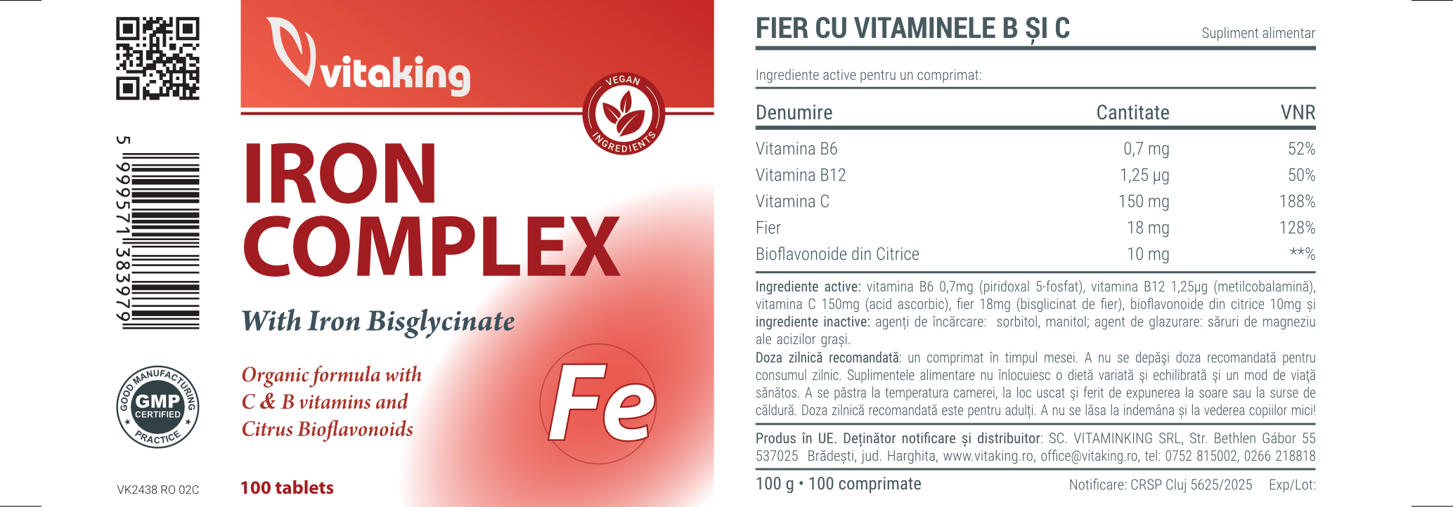 Ingrediente active:Fier bisglicinat - absorbție superioară și biodisponibilitate ridicată, poate contribui la formarea globulelor roșii și la transportul oxigenului către țesuturi.