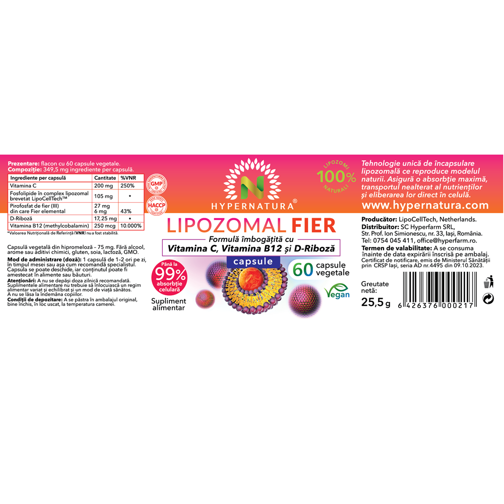 - supliment alimentar imbogatit cu vitamina C, vitamina B12 si D-Riboza;