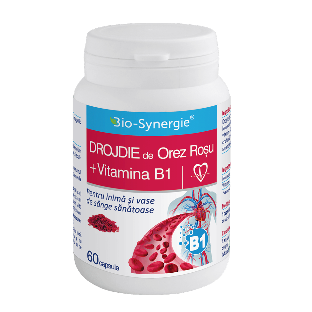 Ingrediente:Drojdie de orez roşu (Monascus purpureus) (4% Monacolina K -2,52 mg, monacoline totale 2,9mg), vitamina B1, agent de încărcare: celuloza micro- cristalină, maltodextrină; agent antiaglomerant: stearat de magneziu, înveliş: capsulă.