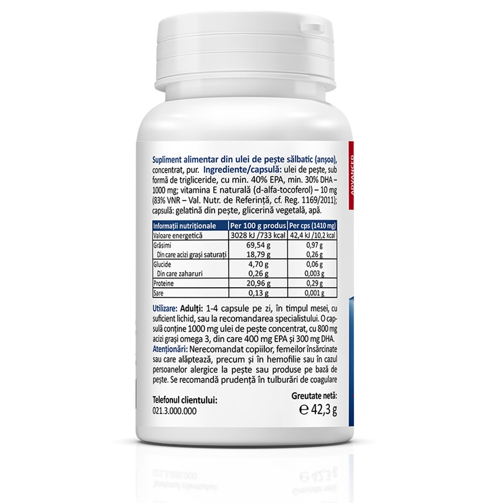 - cu continut ridicat de EPA (400 mg/capsula) si DHA (300 mg/capsula);