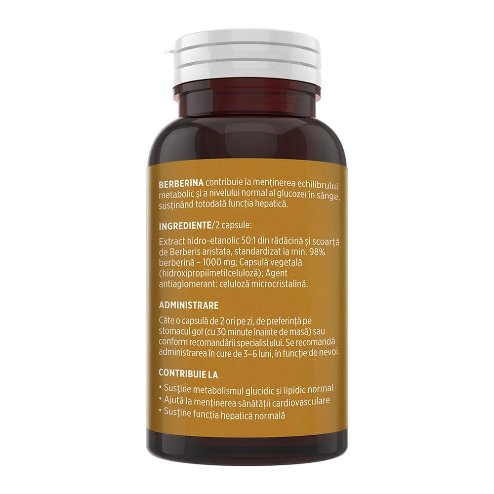 - berberina poate contribui la: mentinerea echilibrului metabolic, mentinerea nivelului normal al glucozei in sange, sustinerea functiei hepatice;
