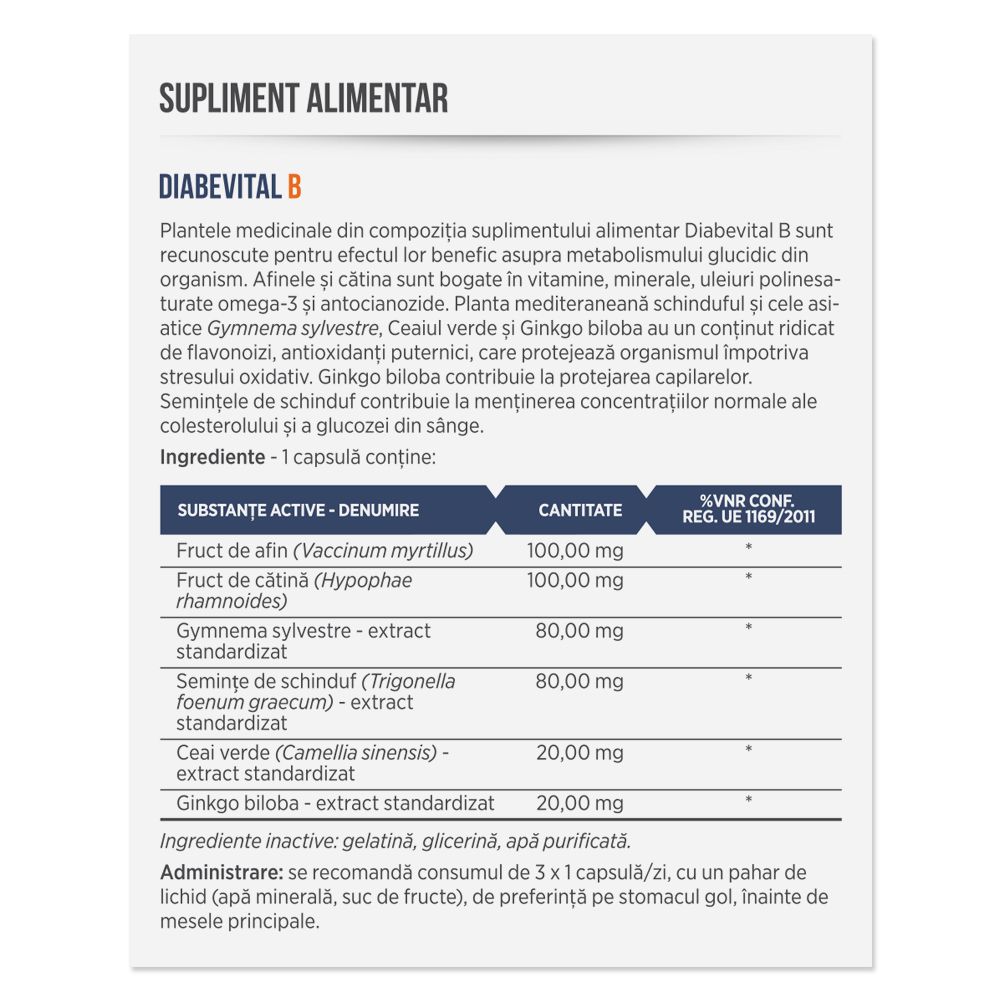 - ingredientele din compoziție sunt recunoscute pentru efectul lor benefic asupra metabolismului glucidic din organism;