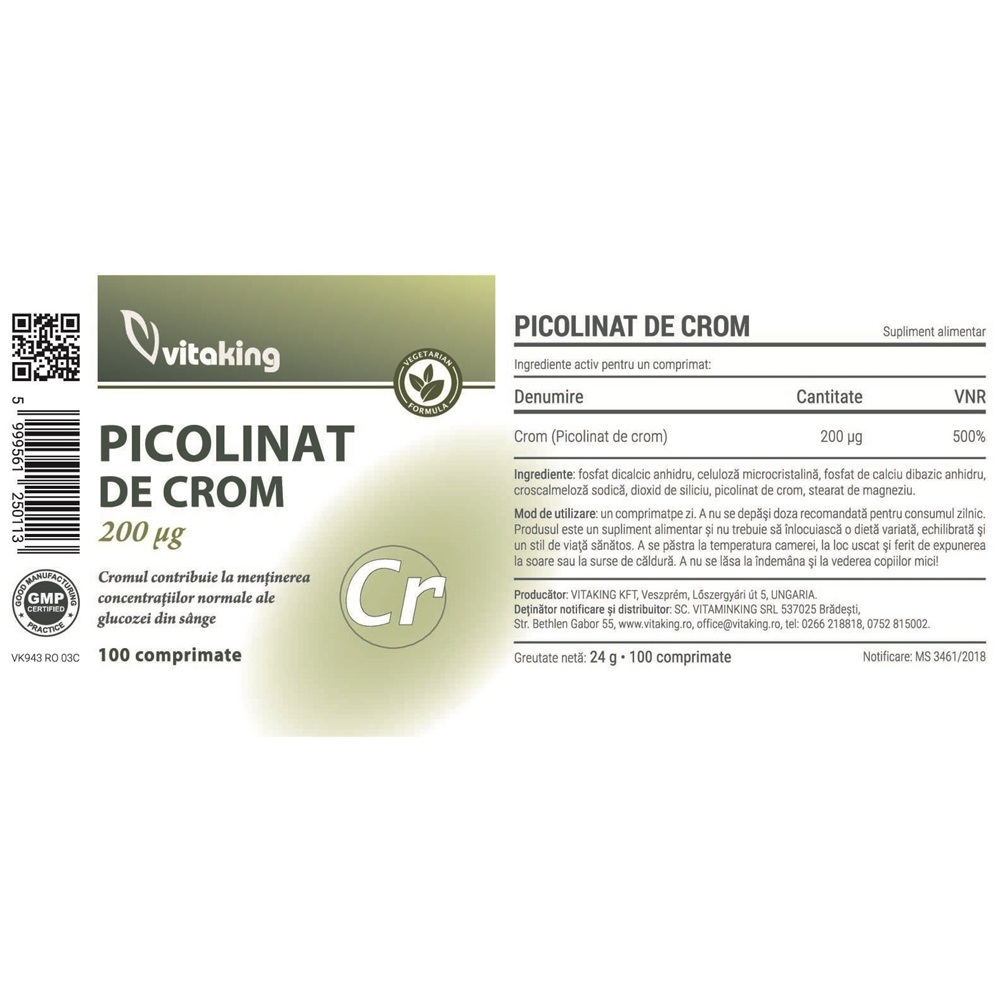 Ingrediente:Fosfat dicalcic anhidru, celuloză microcristalină, fosfat de calciu dibazic anhidru, croscalmeloză sodică, dioxid de siliciu, picolinat de crom, stearat de magneziu.