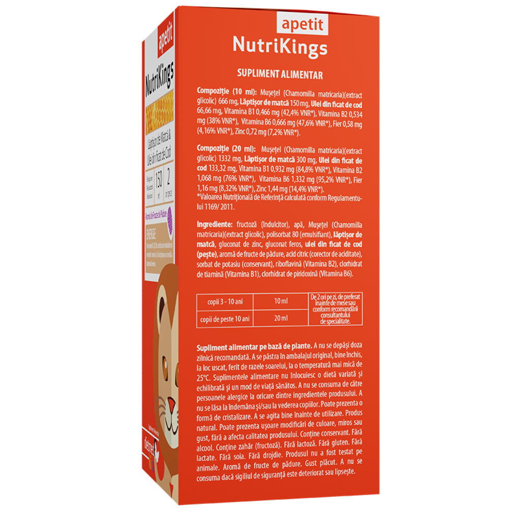 Conține: lăptișor de matcă, pește (cod). *Valoarea Nutrițională de Referință calculată conform Regulamentului 1169/ 2011