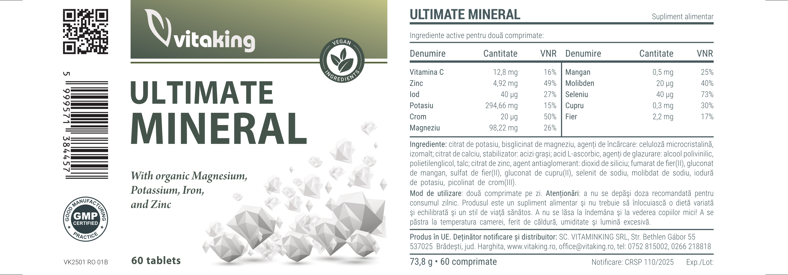 Ingrediente active:| Nutrient | Cantitate | VNR |